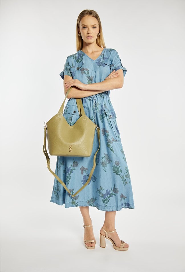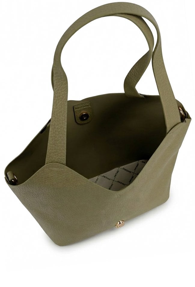 Pojemny shopper damski z dodatkową torebka w środku. Torba jednokomorowa, zapinana na napę, zawieszona na rączkach. W zestawie regulowany, odpinany pasek, który można przypiąć zarówno do większej, jak i mniejszej torby. Torbę należy przechowywać w dołączonym woreczku. Wymiary: 40 cm x 24 cm x 12 cm