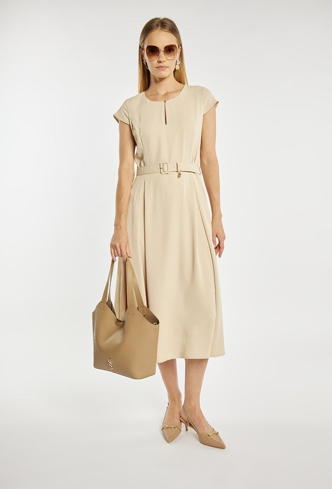 Pojemny shopper damski z dodatkową torebka w środku. Torba jednokomorowa, zapinana na napę, zawieszona na rączkach. W zestawie regulowany, odpinany pasek, który można przypiąć zarówno do większej, jak i mniejszej torby. Torbę należy przechowywać w dołączonym woreczku. Wymiary: 40 cm x 24 cm x 12 cm