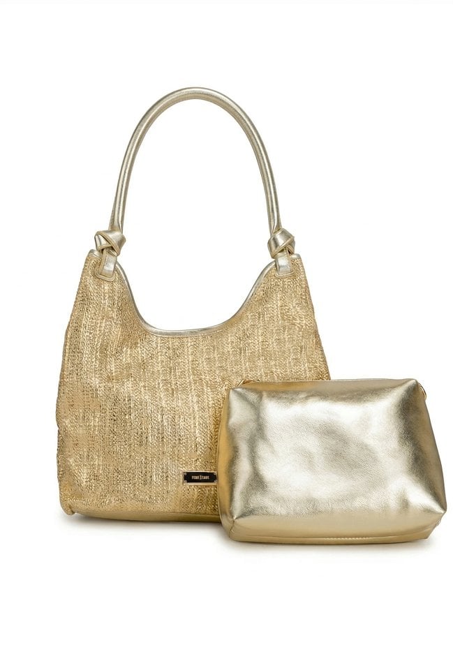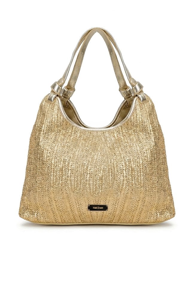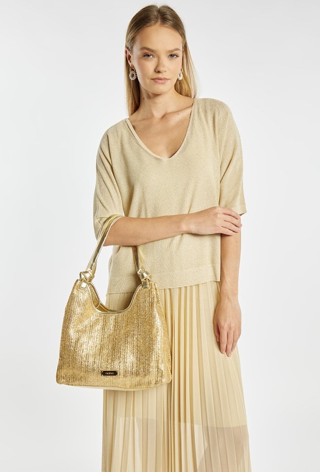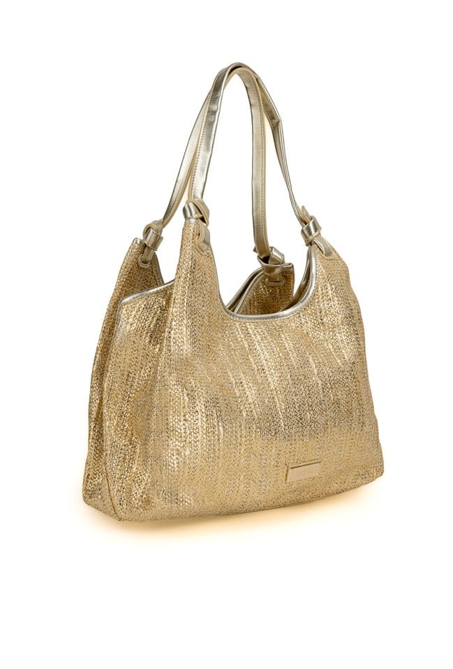 Połyskująca torba damska o wymiarach: 35 cm x 22,5 cm x 14 cm. Torba jednokomorowa o jasnej, logowanej podszewce z dodatkowymi kieszonkami na drobiazgi. Torba zawieszona na wygodnych rączkach. W zestawie znajduje się dodatkowa mała torebka z regulowanym, odpinanym paskiem.