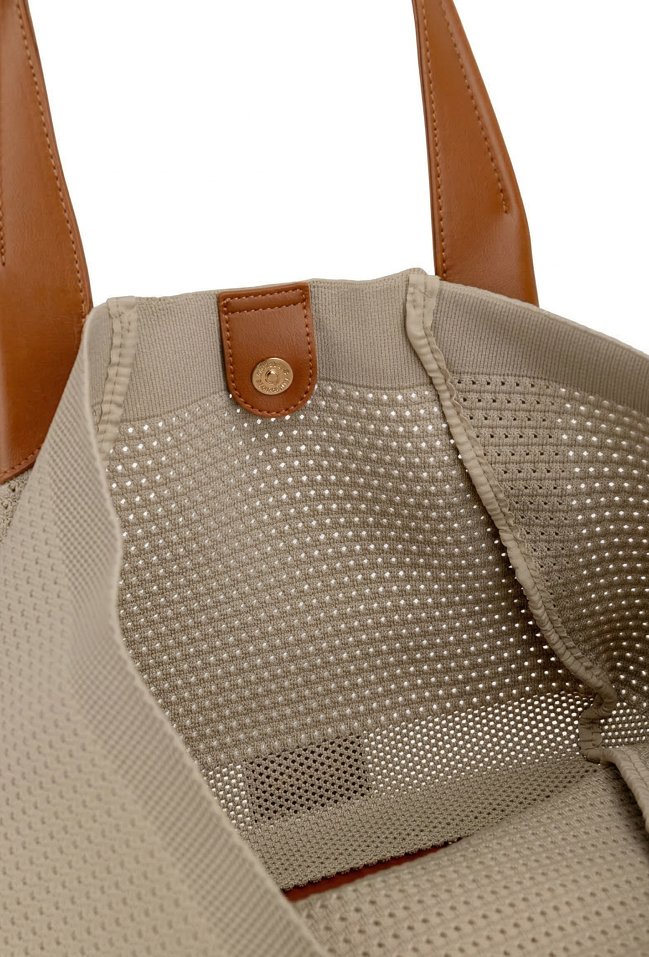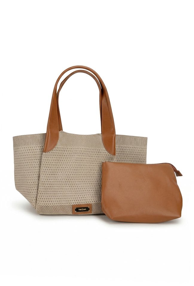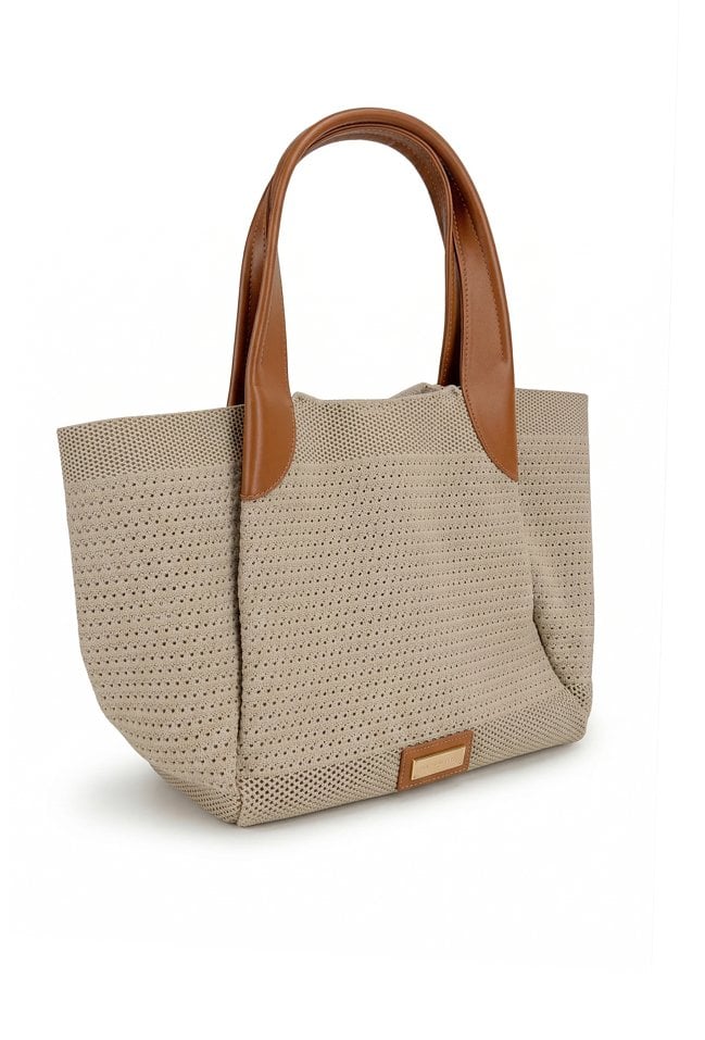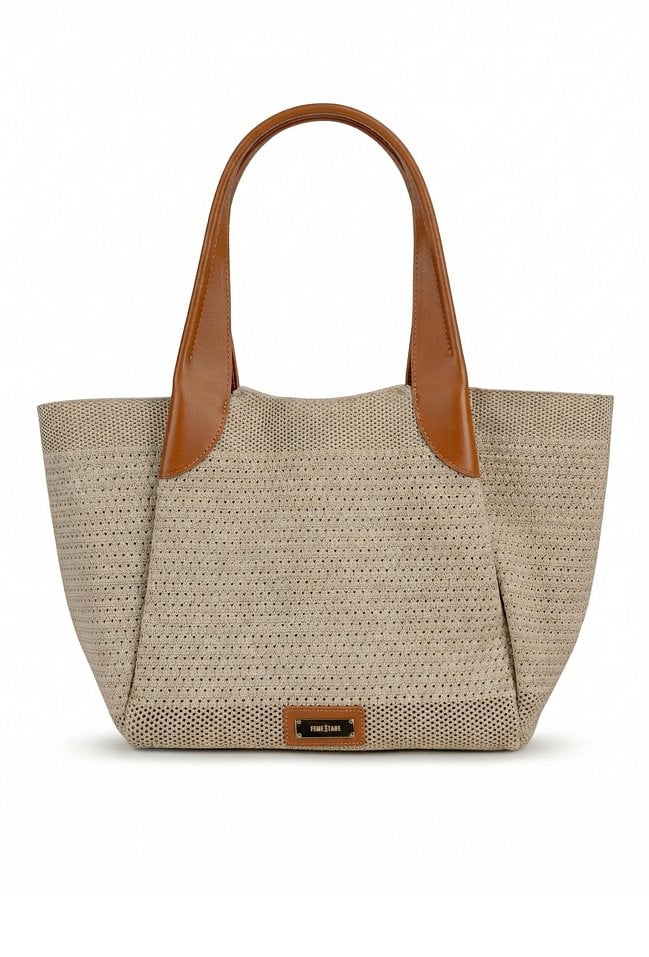 Stylowa torba damska typu shopper z dodatkową małą torebką w środku, idealną na drobne akcesoria. Jedna pojemna komora zapinana na napę oraz wygodne rączki umożliwiają noszenie torby na ramieniu lub w dłoni. Lekka i praktyczna, świetnie sprawdzi się w codziennych oraz letnich stylizacjach. Torbę należy przechowywać w dołączonym woreczku. Wymiary: 46 cm x 30 cm x 14 cm