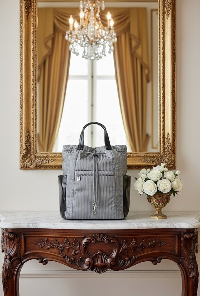 Plecak damski wykonany z tekstylnego materiału. Plecak jednokomorowy, wykończony jasną, logowaną podszewką, zapinany na napę oraz ściągacz, zapewniający bezpieczeństwo przechowywanych przedmiotów. Wewnątrz i na zewnątrz plecaka znajdują się dodatkowe kieszonki, które umożliwiają wygodną organizację drobiazgów. Plecak jest wyposażony w solidne rączki oraz charakterystyczne, regulowane paski, dzięki którym można go komfortowo nosić na plecach. Należy przechowywać w dołączonym woreczku. Wymiary: 35 cm x 33 cm x 15 cm