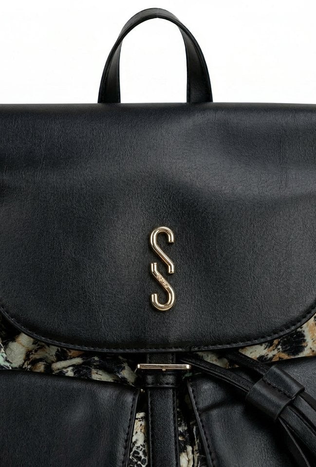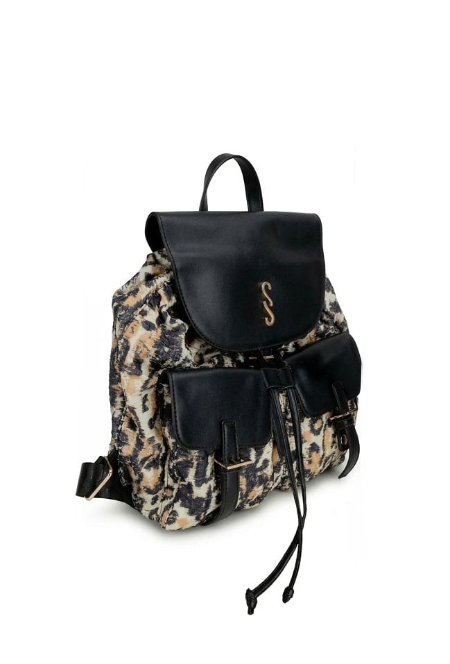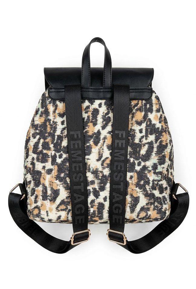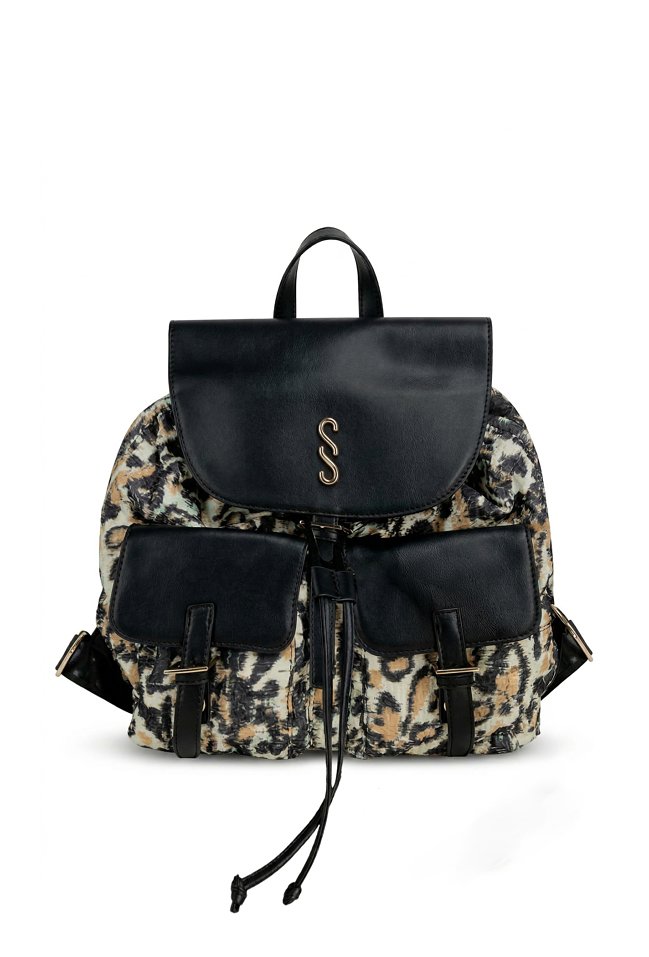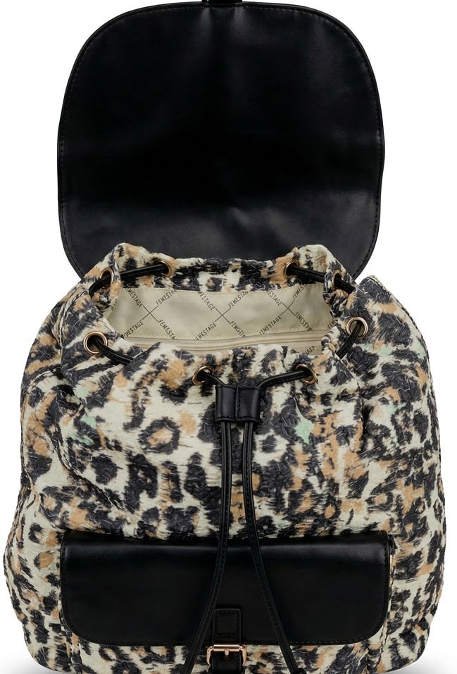 Tekstylny plecak damski o wymiarach 36 × 31 × 14 cm. Jednokomorowy model z jasną, logowaną podszewką oraz dodatkowymi kieszonkami na drobiazgi. Zamykany na ściągacz oraz klapę z napą. Z przodu znajdują się dwie pojemne, zapinane kieszenie, które zwiększają funkcjonalność plecaka.