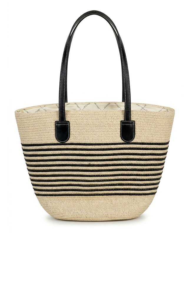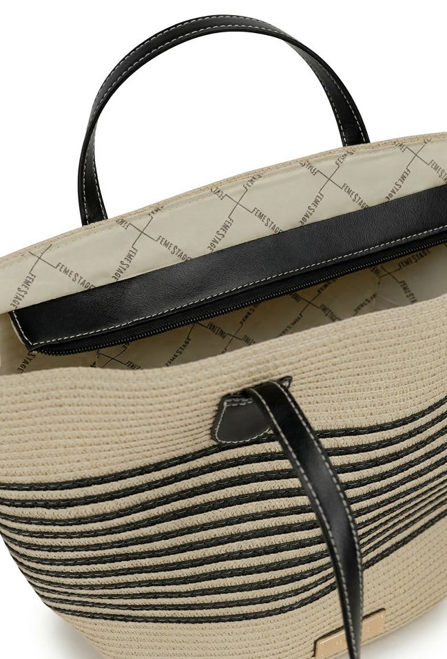 Torba damska typu koszyk, idealna na letnie dni. Jednokomorowy model z jasną, logowaną podszewką. Torba zawieszona na rączkach. Torbę należy przechowywać w dołączonym woreczku. Wymiary: 33,5 cm x 35 cm x 11 cm