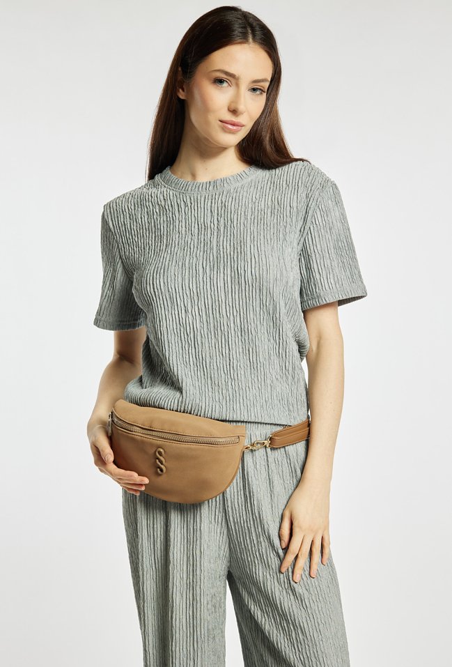 Torba damska typu nerka o wymiarach 25 × 13 × 5 cm to wygodny i stylowy wybór na co dzień oraz w podróży. Torba jest jednokomorowa, ma jasną, logowaną podszewkę oraz dodatkowe kieszonki na drobiazgi, które ułatwiają organizację. Torba zawieszona na regulowanym, odpinanym pasku pozwala nosić ją na biodrach lub przez ramię, dopasowując do własnych potrzeb. Torbę należy przechowywać w dołączonym woreczku.