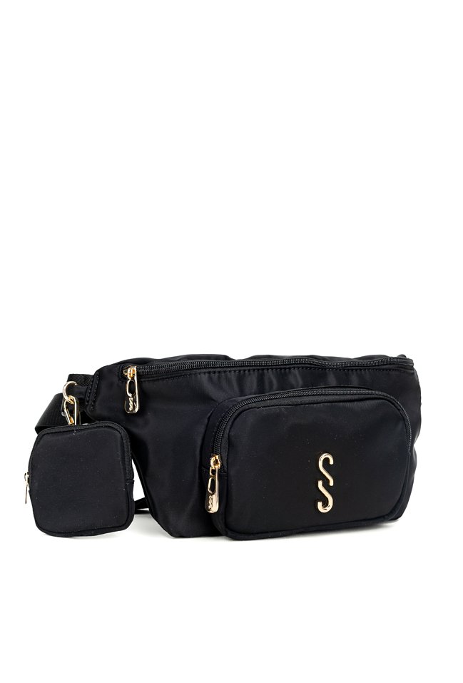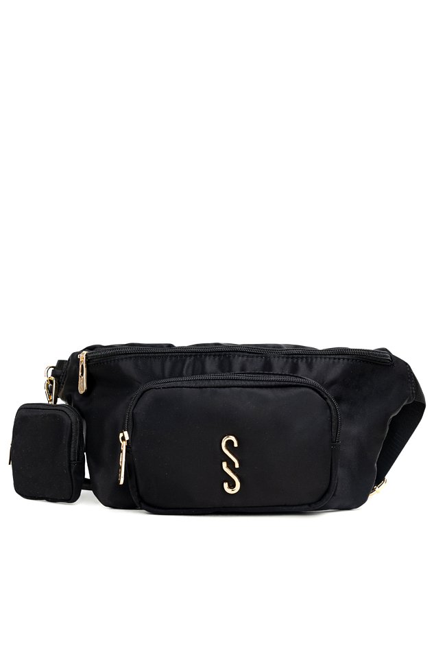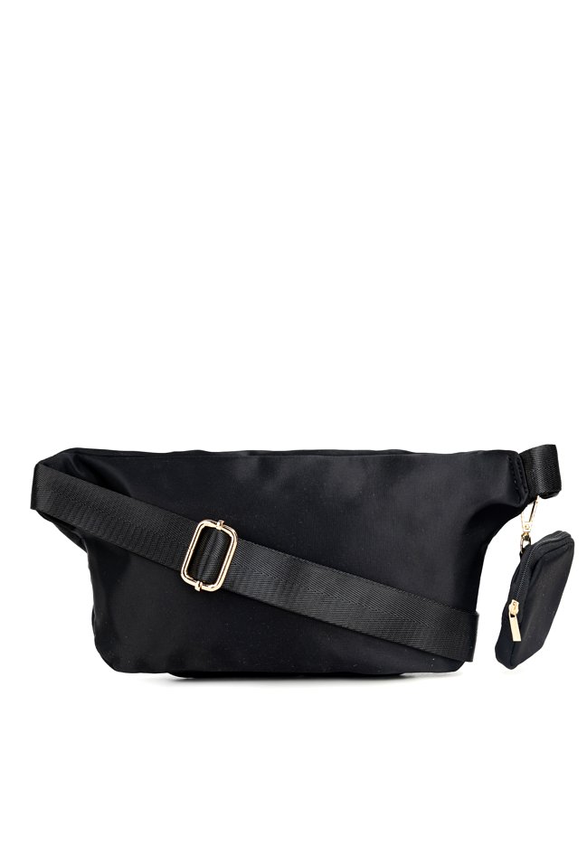Torba tekstylna damska typu nerka o wymiarach 33 × 16 × 5 cm, jednokomorowa, z jasną, logowaną podszewką oraz praktyczną kieszonką z przodu. Torba noszona na regulowanym pasku, uzupełniona o małą saszetkę jako dodatkowy atut. Torbę należy przechowywać w załączonym woreczku.