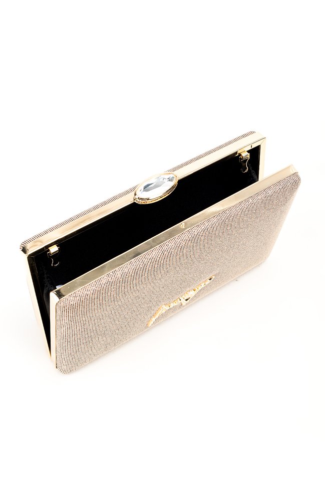 Wizytowa torebka damska z subtelnym połyskiem. Torba wyposażona w jedną komorę wykończoną ciemną podszewką, łączy styl z funkcjonalnością. Model zapinany na praktyczny klips zapewnia bezpieczne przechowywanie zawartości. To elegancki dodatek, który sprawdzi się zarówno na co dzień, jak i podczas wyjątkowych okazji. Torbę należy przechowywać w dołączonym woreczku. Wymiary: 21 cm x 13 cm x 3,5 cm.