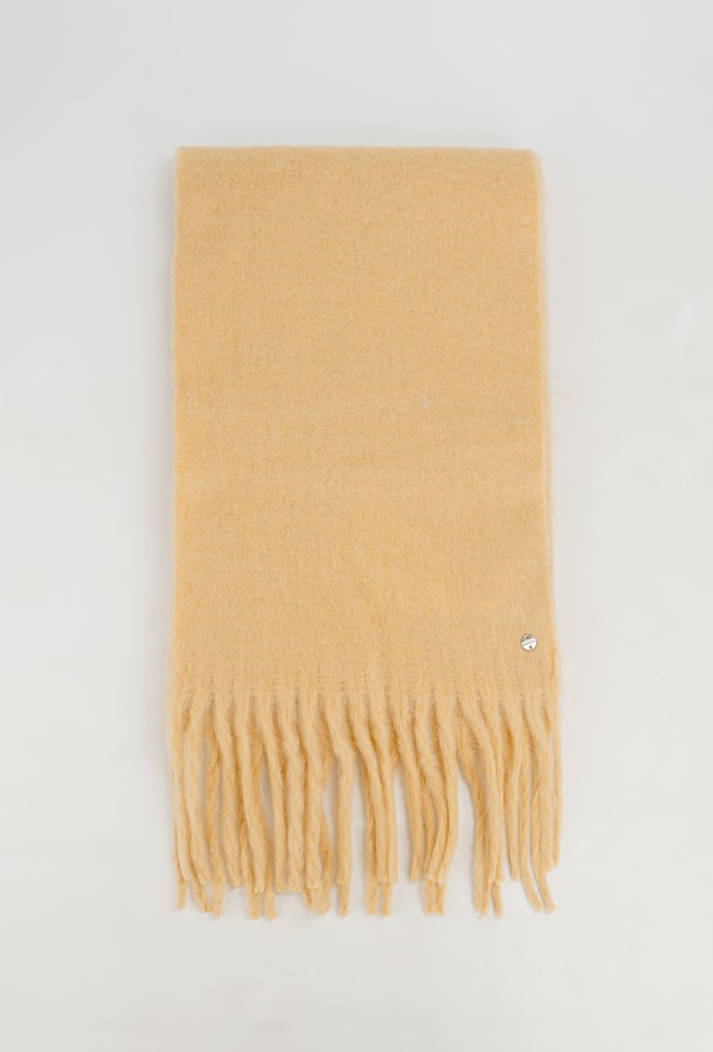 Jasny szal z dodatkiem wełny to idealny wybór na chłodniejsze dni. Miękki, ciepły i przyjemny w dotyku, świetnie układa się przy każdej stylizacji. Jasny odcień dodaje elegancji i pasuje do wszystkiego. Wybierz komfort i ponadczasowy styl!