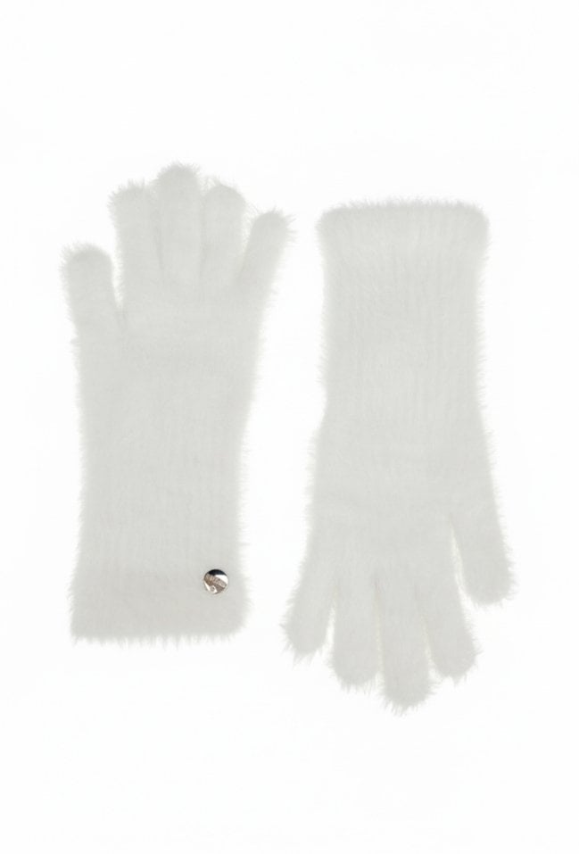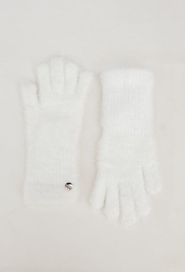 Białe futrzane rękawiczki
