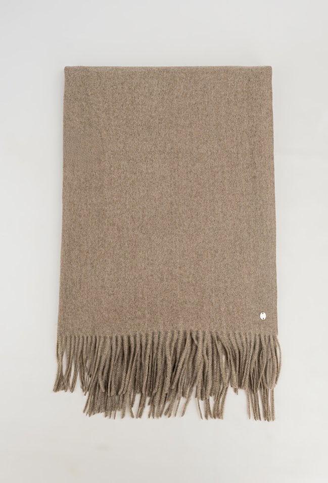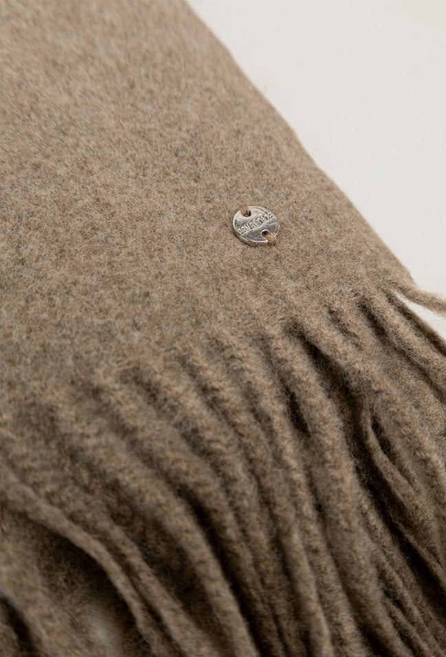 Wyjątkowy szal z domieszką wełny będzie stanowił idealny dodatek do jesienno-zimowego looku. Wykony z przyjemnej dzianiny otuli nas i ogrzeje w chłodnie dni. Szal zakończony jest na końcach frędzlami , które dodają mu lekkości.