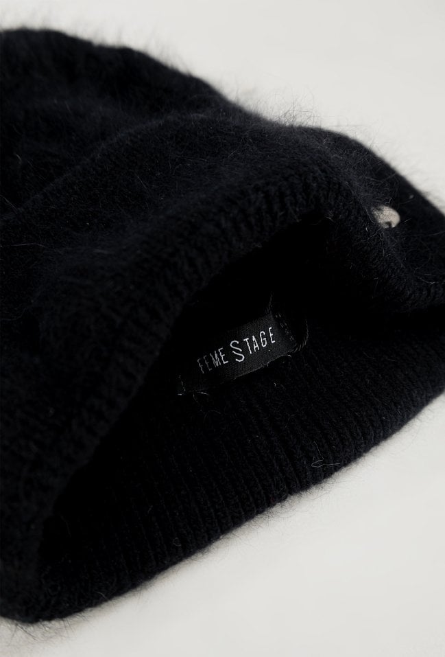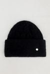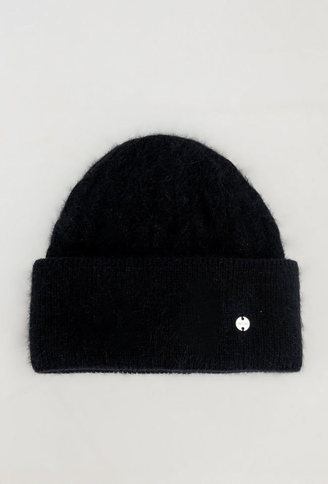 Czarna czapka ze ściągaczem jest wykonana z wysokogatunkowej angory z dodatkiem kaszmiru. Czapka pięknie będzie się prezentował przy twarzy. Miękka i przyjemna w dotyku dzianina doskonale dostosowuje się do kształtu głowy.