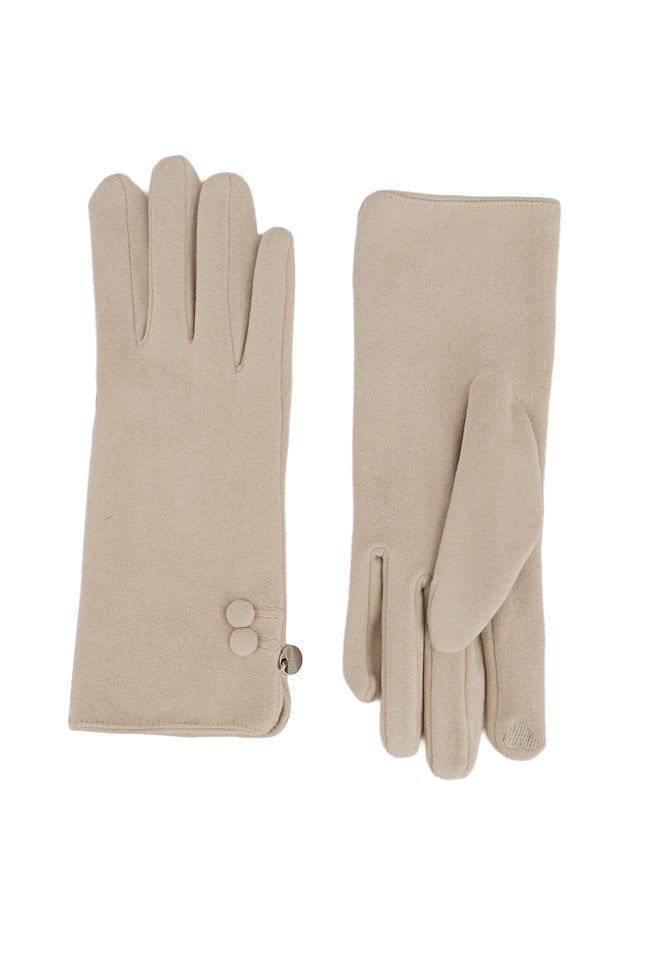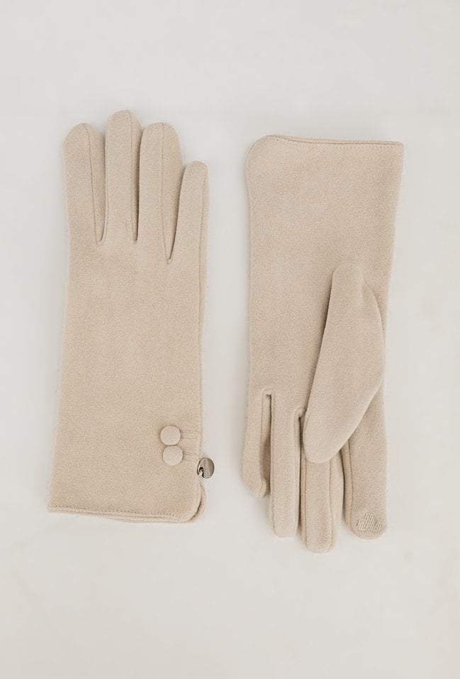 Eleganckie rękawiczki w pięknym kremowym kolorze to świetny dodatek, który łączy funkcjonalność z estetyką. Rękawiczki zdobią małe guziczki.