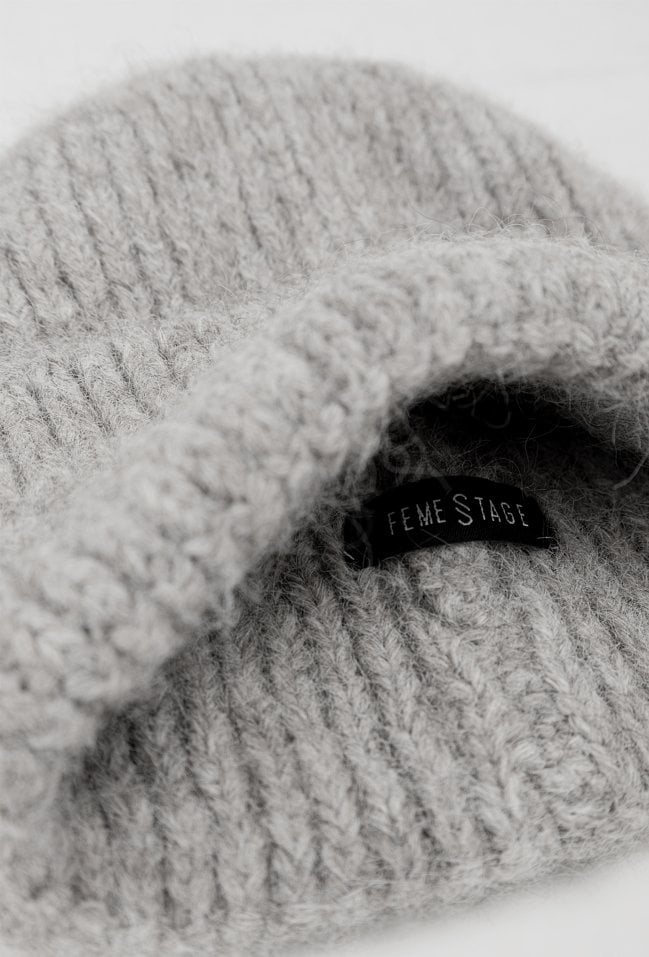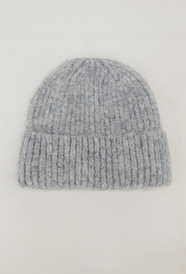 Szara czapka ze ściągaczem jest z dodatkiem alpaki i wełny . Czapka pięknie będzie się prezentował przy twarzy. Miękka i przyjemna w dotyku dzianina doskonale dostosowuje się do kształtu głowy.