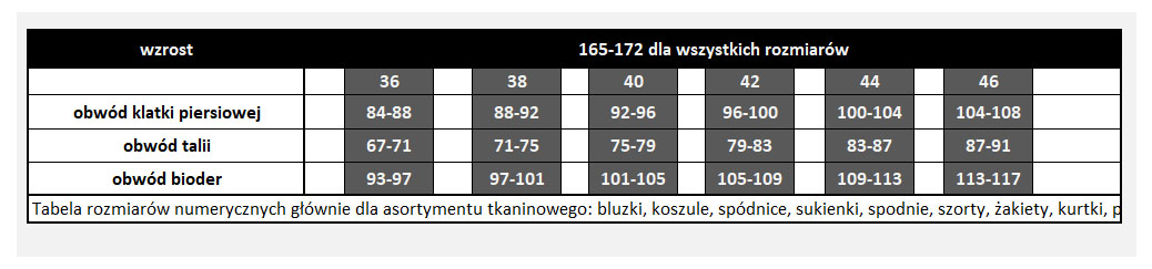 W celu prawidłowego określenia rozmiaru, zaleca się dokładne zdjęcie miary, najlepiej wykonywać to w bieliźnie. Dzięki temu uzyskany wymiar będzie dokładniejszy. Luźne ubrania wypaczają mierzone wymiary. Należy pamiętać, aby wszystkie dane podane były w cm oraz żeby trzymać centymetr zawsze poziomo, nie ściskając jednocześnie nim ciała.