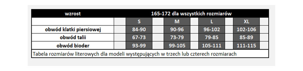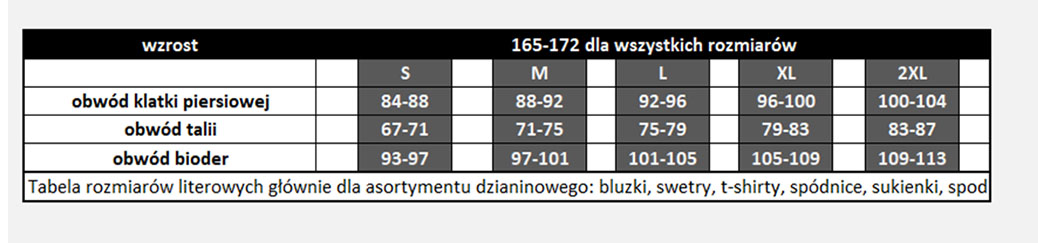 Przy określaniu rozmiaru prosimy korzystać z poniższych tabel.
